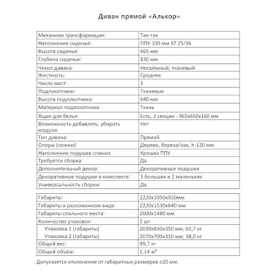 Диван Алькор (Аквилон) продается в интернет-магазине mebel-online-izhevsk.ru по цене 63 963 руб. Есть доставка по Ижевску и Удмуртской Республике. Возможность подъема на этаж и сборки уточняйте у менеджера по телефону 8(800)505-27-11.